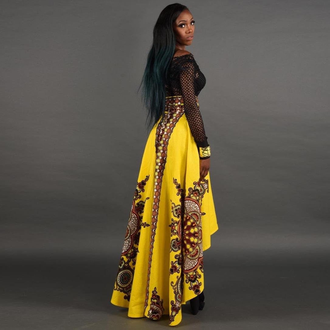 Robe Africaine Bisi Epaule Robe Longue Robe Jaune Imprime Etsy