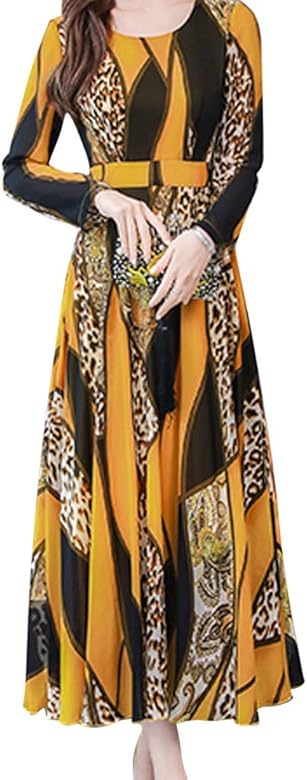 Kukicat Robe De Soiree Femme Patchwork 50 S 60 S Style Elegant Leopard Manches Longues Col Rond Taille Haut Casual Maxi Robe Amazon Fr Vetements Et Accessoires