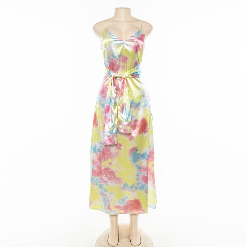 Acheter Ete V Cou Sexy Maxi Robe Boheme Femmes High Street Cravate Teinture Ceintures Satin Robe Dames Dos Nu Plage Cwd0508 5 De 21 1 Du Avive Dhgate Com