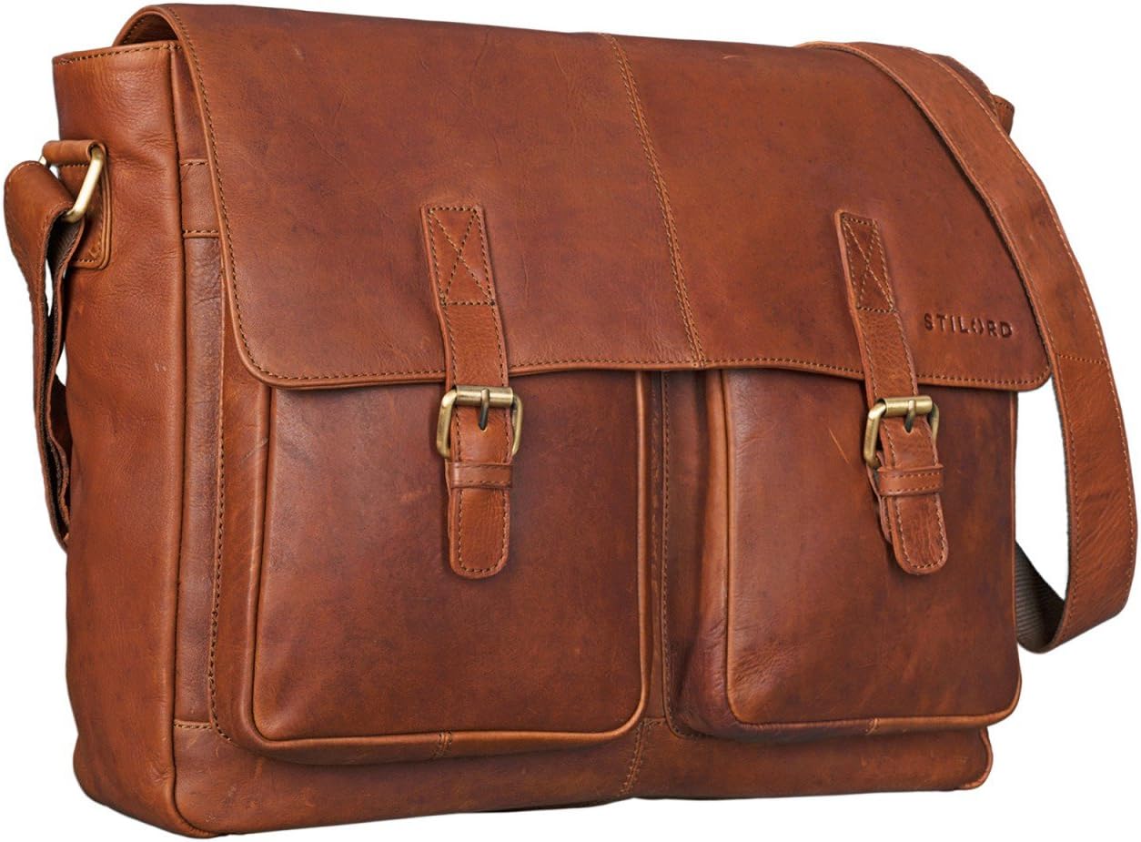 Stilord Fabius Umhangetasche Herren Leder Gross Vintage Laptoptasche 15 6 Zoll Aktentasche Din A4 Fur Business Buro Arbeit Uni Echtes Buffelleder Dunkelbraun Farbe Cognac Aktentaschen Business Laptop Taschen