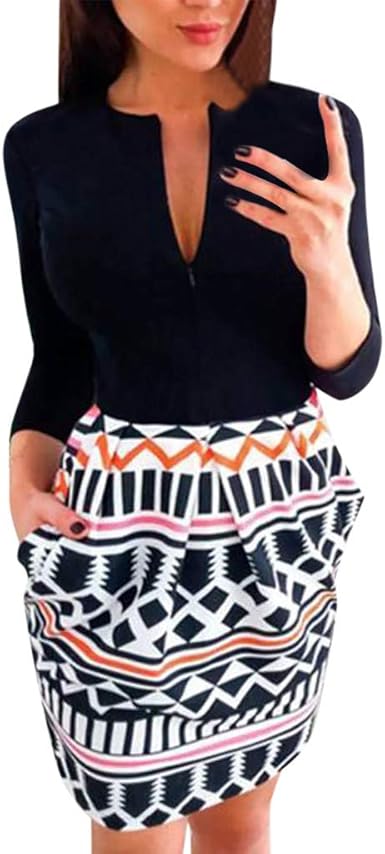 Amazon Com Behkiuoda Women Office Lady Work Dress V Neck Formal Dress Dinner Party Dress Long Sleeve Floral Mini Dress Black Clothing